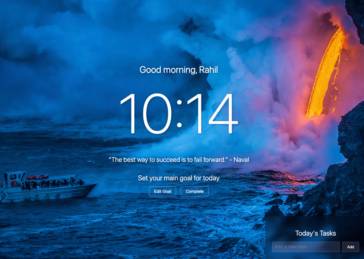 Personal Greeting: Show a personalized greeting based on the time of day, such as “Good morning, [Name].” Assume the name is “Rahil.”